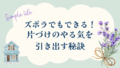 「片づけなきゃ」と思っても、なかなか体が動かない…。そんな日、ありますよね。疲れがたまっていたり、他のことに気を取られていたりすると、どうしても片づけが後回しになりがちです。でも、そんなときでも、ちょっとした工夫を取り入れるだけで、心がふっ...