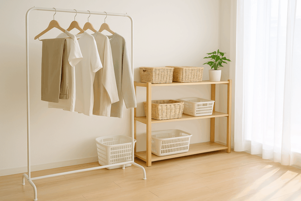 コンパクトな生活空間では、“干す・たたむ・収納”を一か所に集める工夫が便利です。