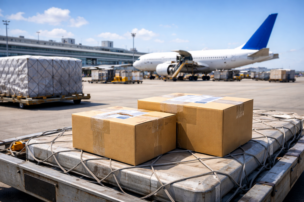 この表示が出るんは、荷物が飛行機で日本に着いて、空港の貨物エリアに運び込まれたタイミングがほとんどや。