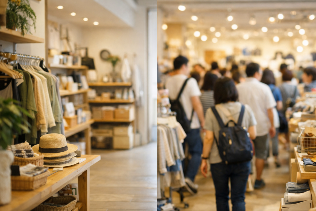 ファッションや雑貨、マーケットなどジャンルも幅広く、目的や好みに合わせて楽しみ方を選べる点も特徴です。