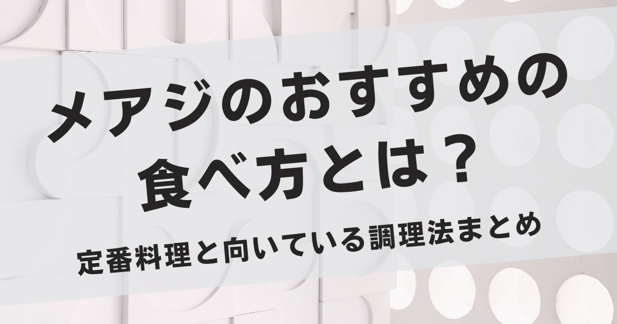 ここでは、メアジでよう使われとる定番の食べ方を中心に整理していきます。