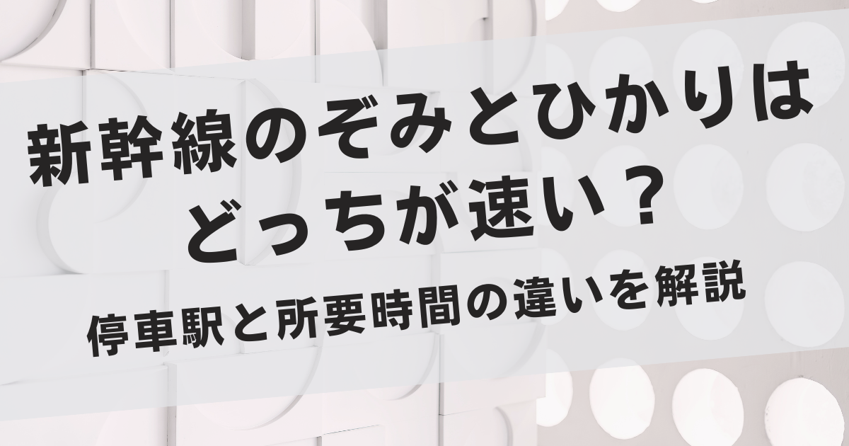 新幹線を利用するときに、「のぞみとひかりはどっちが速いのだろう?」と感じたことがある方は多いかもしれません。