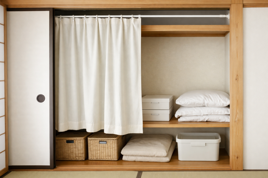 押入れにカーテンを取り入れることで、空間の印象や使い勝手に変化を感じることがあります。