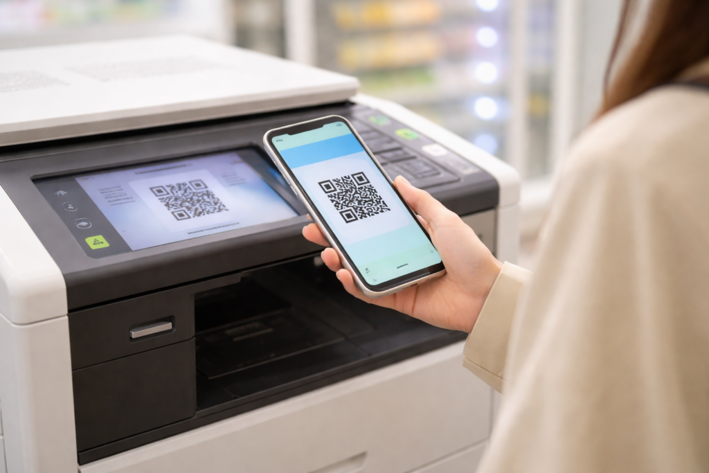 スマホアプリやネットワークプリントサービスを通じてファイルをアップロードし、店頭で番号やQRコードを入力するだけで印刷できる仕組みになっています。
