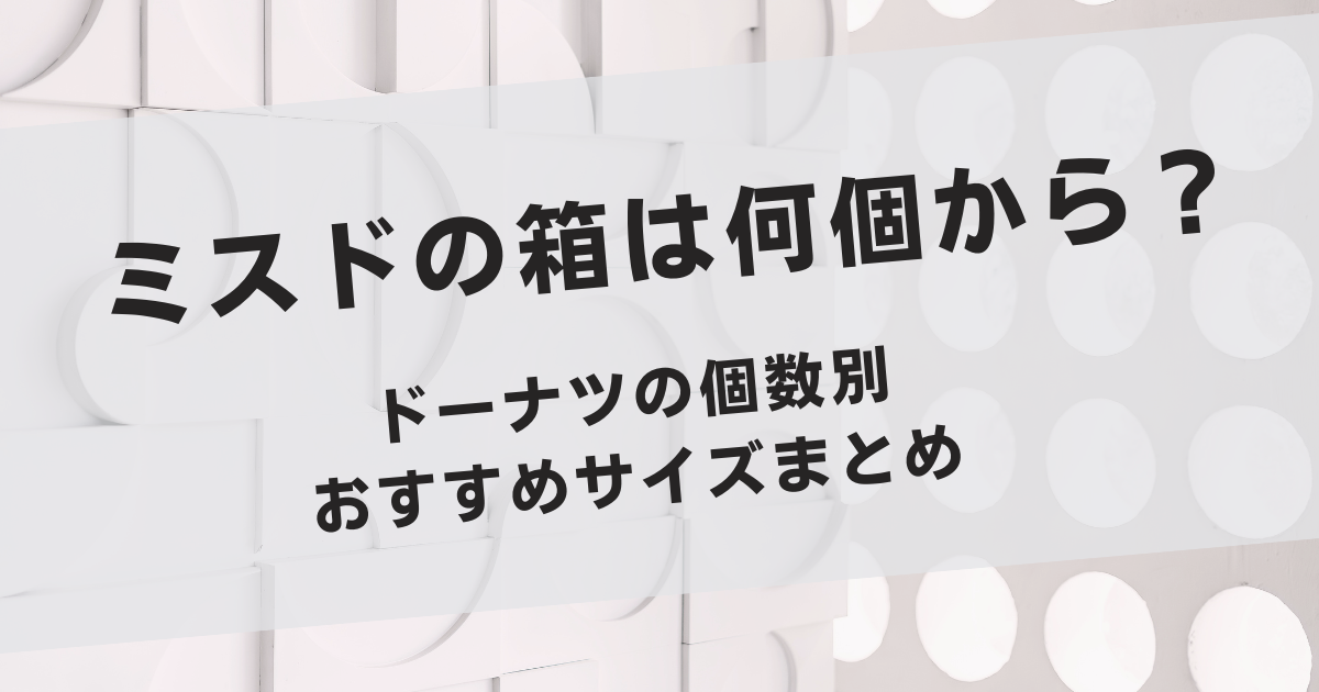 この記事では、ミスドの箱が何個から用意されることが多いのか、個数別のおすすめサイズや選び方のコツまでわかりやすくまとめました。