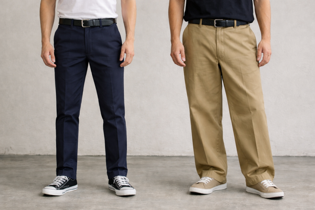 同じウエスト表記でも履き心地や見た目の印象が異なるため、シルエットの違いを理解して選ぶことが大切です。